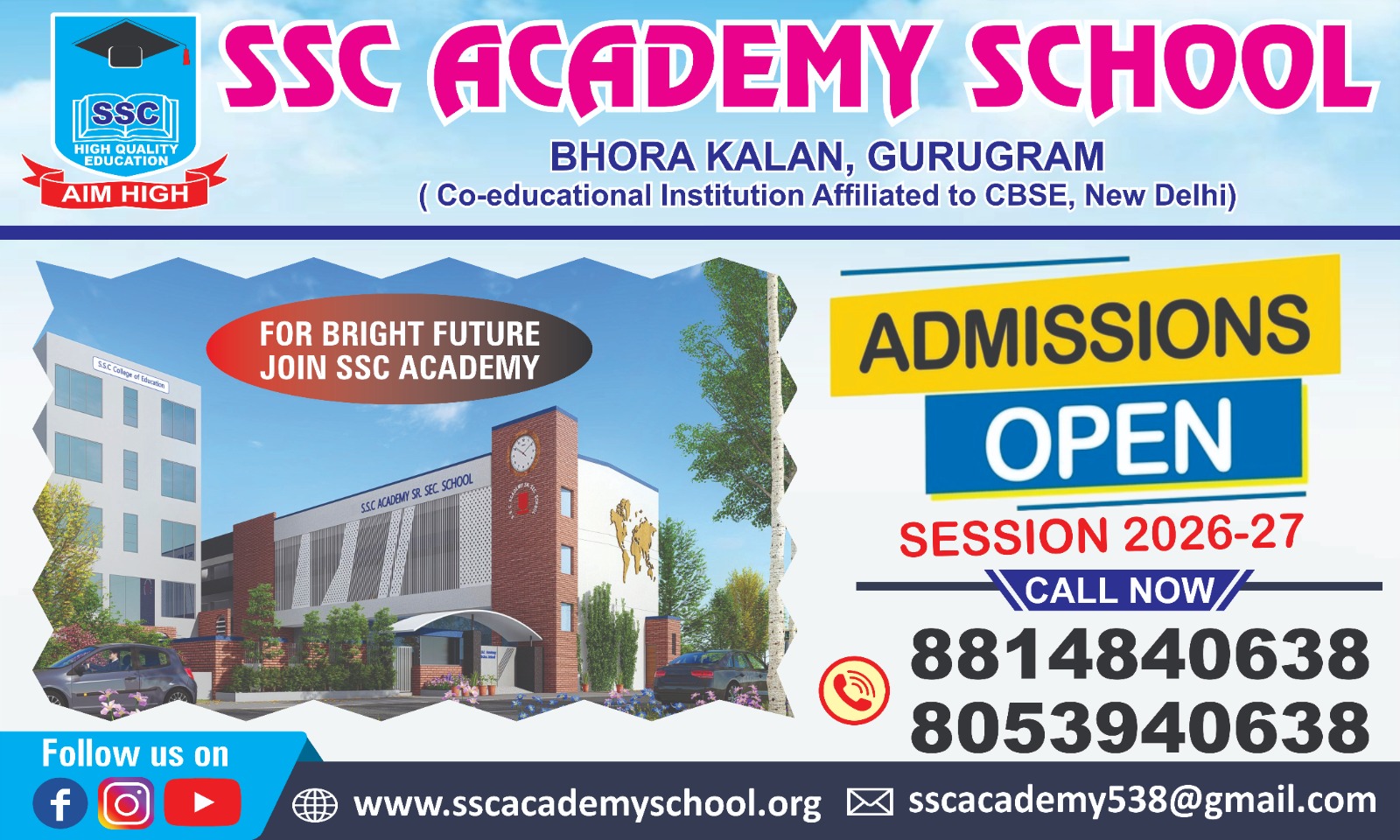 SSC Academy located ar Bhora Kalan village, Gurugram is grouwing and upcoming school in area.